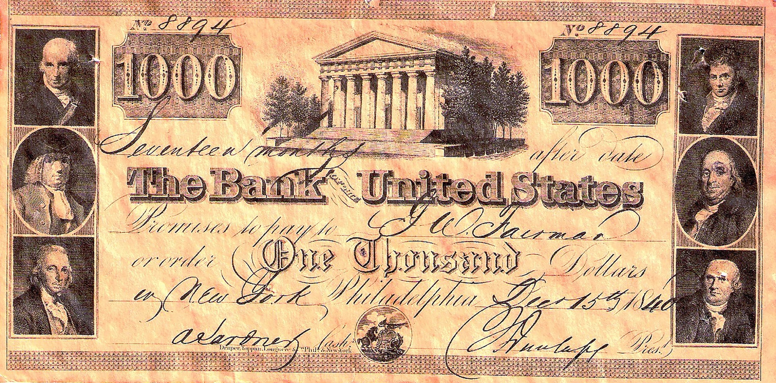 The United States federal government, specifically Congress, established the Second National Bank in 1816. The First National Bank was established in 1791, and although its twenty-year charter yielded positive results, the renewal of the bank was denied by just one vote in Congress. With the majority of Congress against another national bank and along with the mastermind behind the plan, Alexander Hamilton, having passed away, the vision of a national bank seemed to be fading. However, positions changed following the War of 1812. After three years of fighting with Britain over trading disputes, the United States was exhausted economically. Many state banks were failing to redeem their notes and fulfill contractual obligations. In 1815, James Madison, the then-president and a long-time opponent to the idea of a national bank, reluctantly agreed that the United States needed a uniform national bank to help reinvigorate the economy. After months of debate, Madison signed an act establishing the Second National Bank.